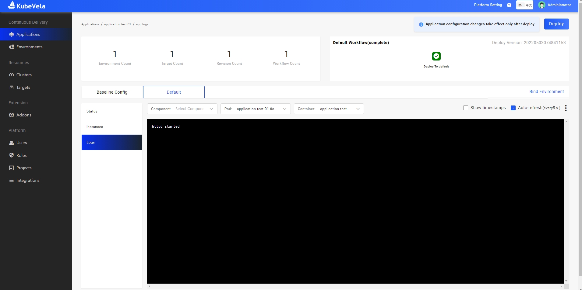 vela logs -n vela-system --name apiserver addon-velaux | grep "initialized admin username"