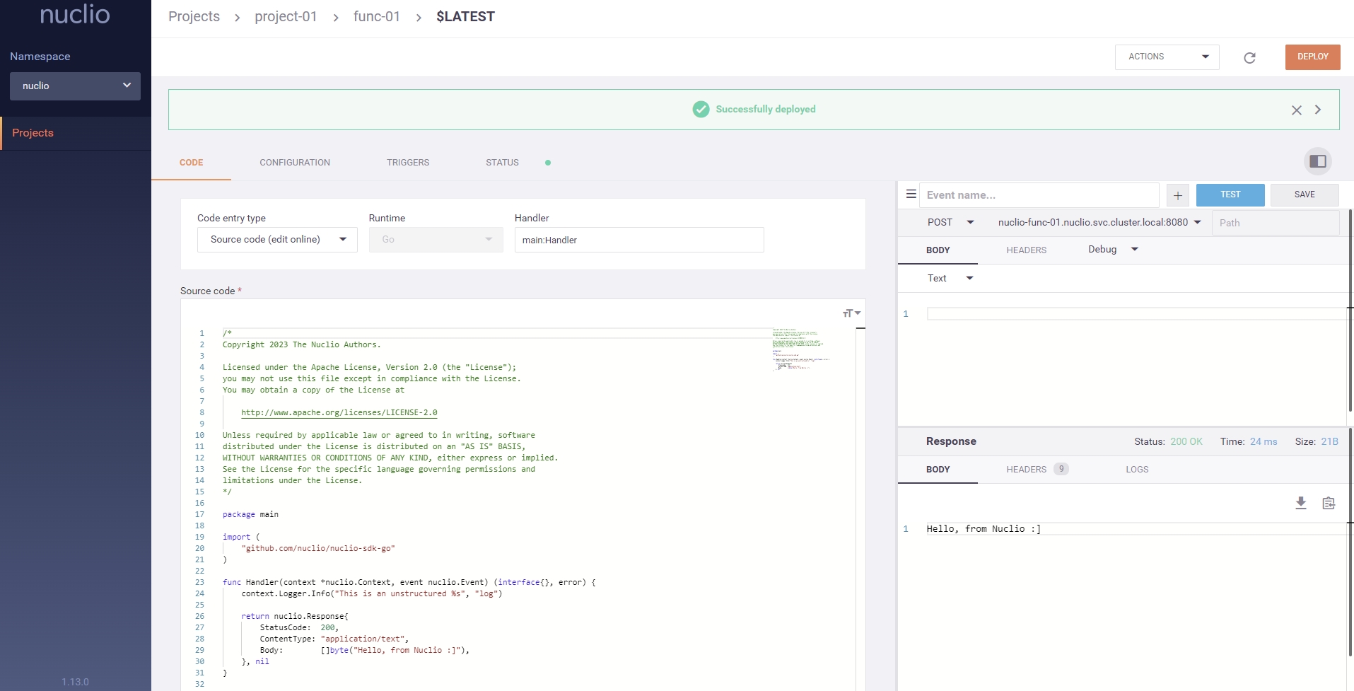 helm repo add nuclio https://nuclio.github.io/nuclio/charts helm repo update nuclio kubectl create namespace nuclio kubectl delete secret registry-credentials -n nuclio kubectl --namespace nuclio create secret docker-registry registry-credentials \ --docker-username gitea_admin \ --docker-password r8sA8CPHD9!bt6d \ --docker-server gitea-http.gitea.svc.cluster.local:3000 \ --docker-email gitea@local.domain helm install nuclio nuclio/nuclio --namespace nuclio --values ./nuclio-values.yaml