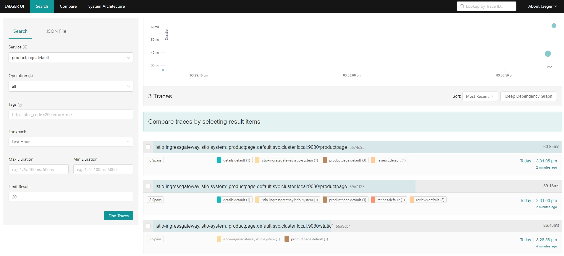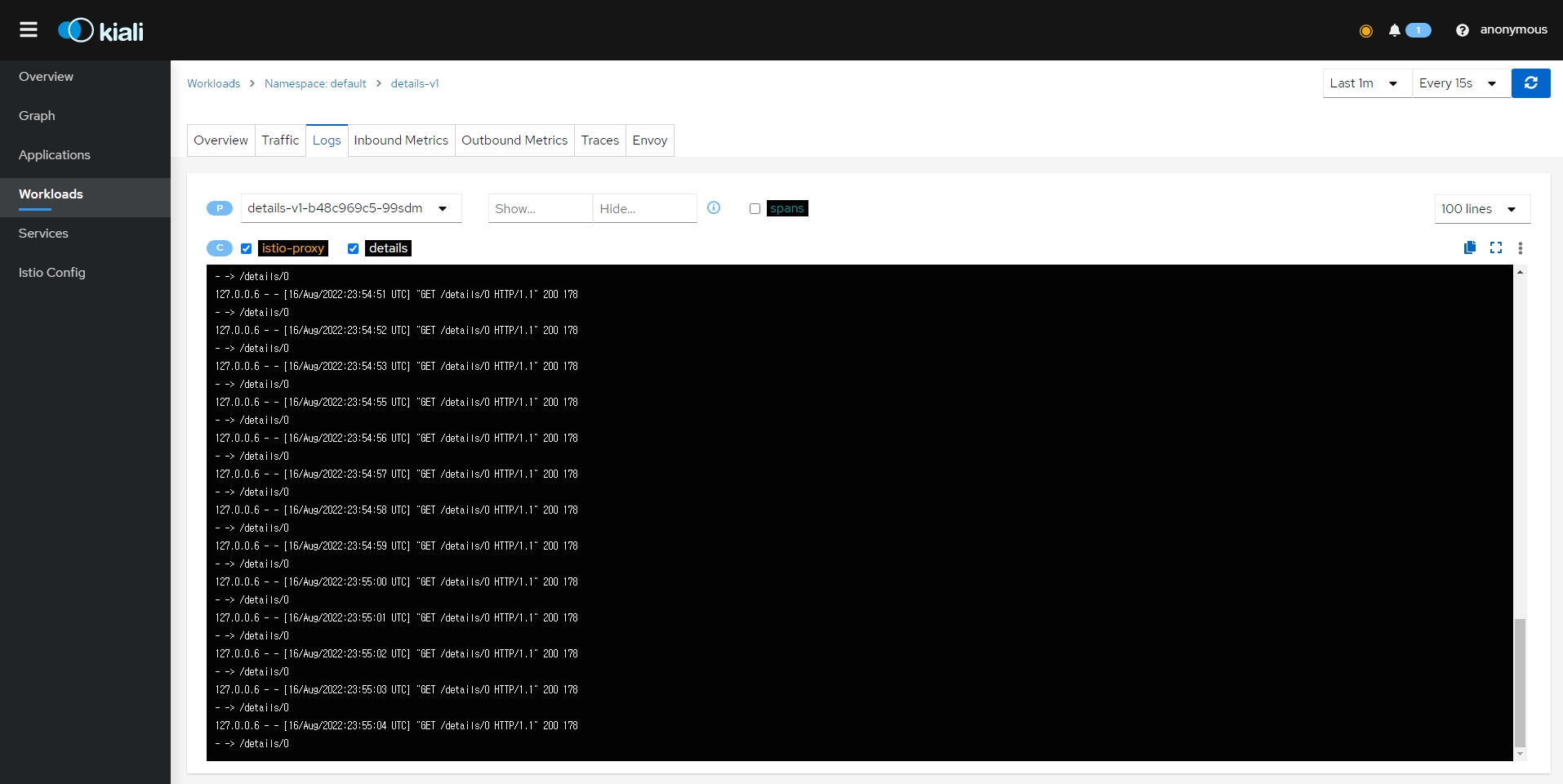 - 재시도 간격(25ms+)은 가변적이며 Istio에 의해 자동으로 결정되어 호출된 서비스가 요청으로 압도되는 것을 방지