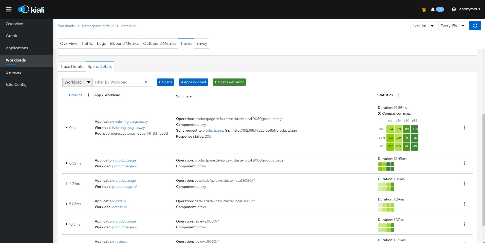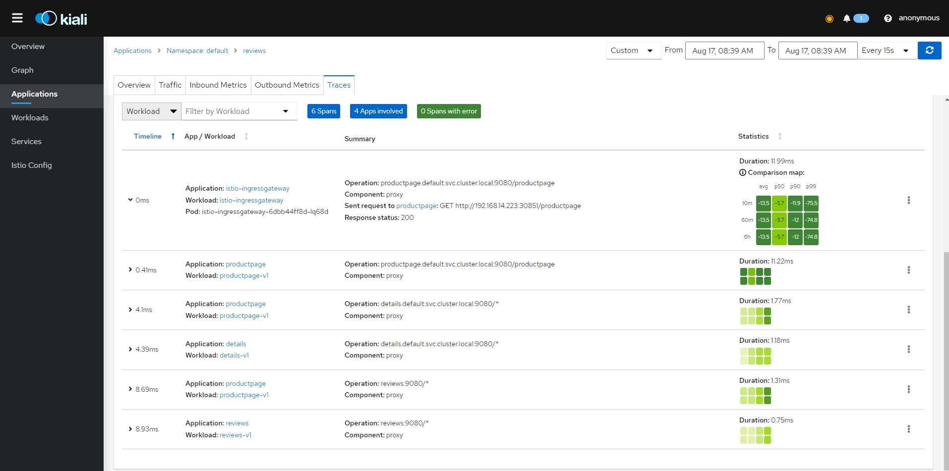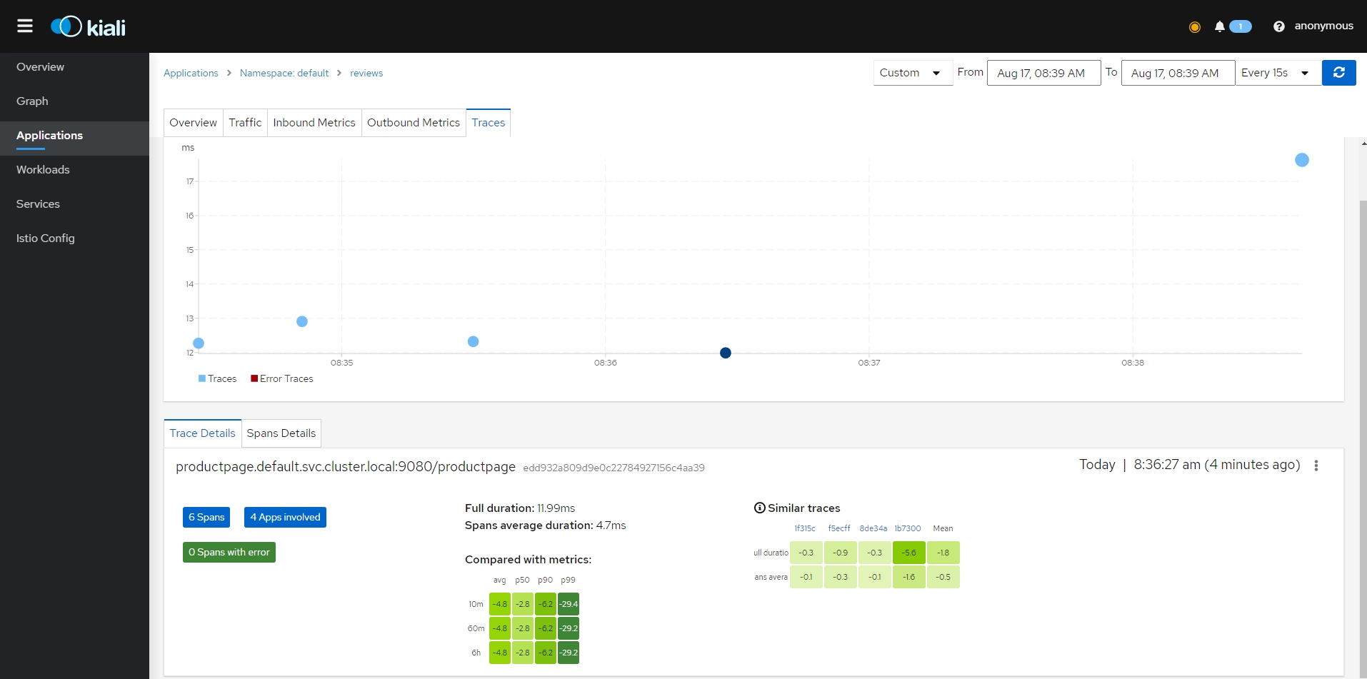 - 클러스터 수신 및 송신을 포함하여 클러스터 내의 모든 트래픽에 대한 자동 메트릭, 로그 및 추적