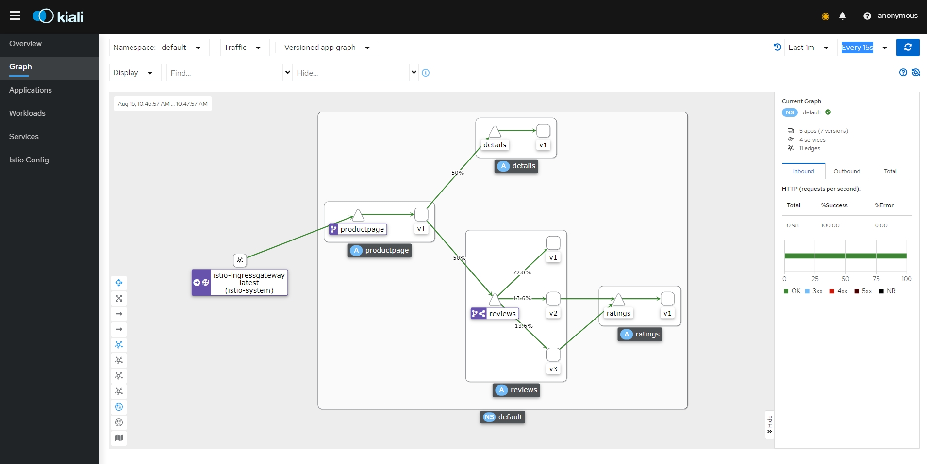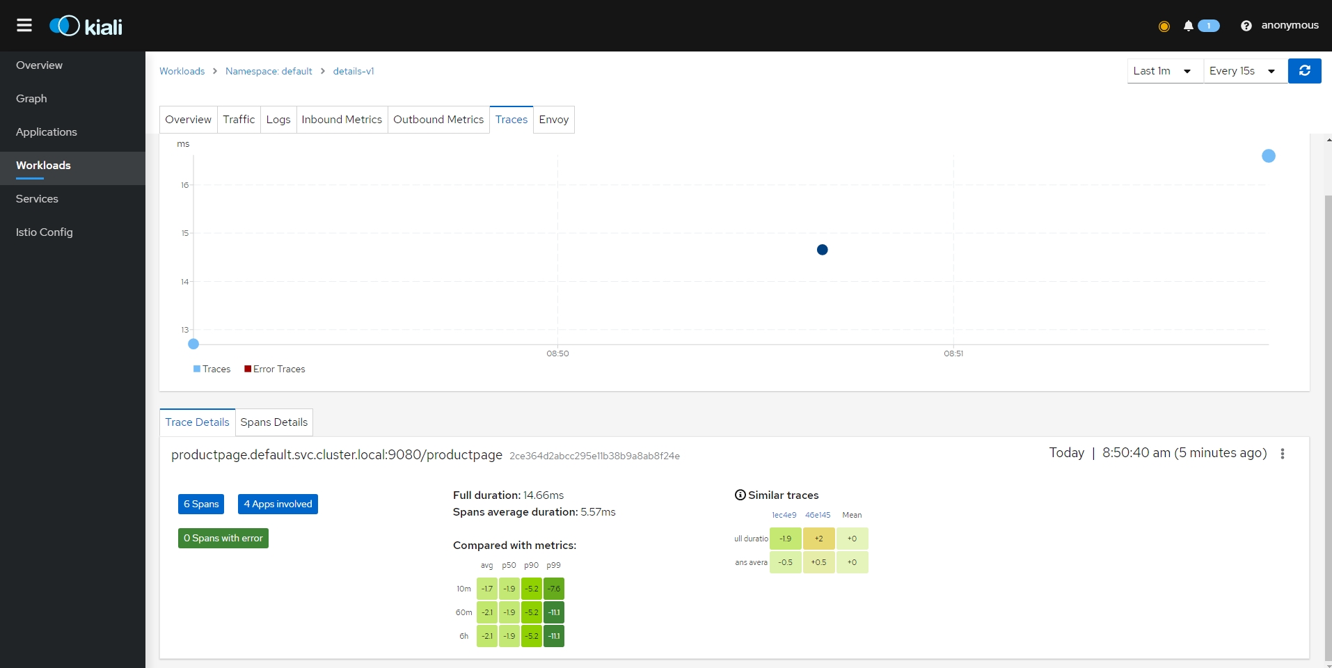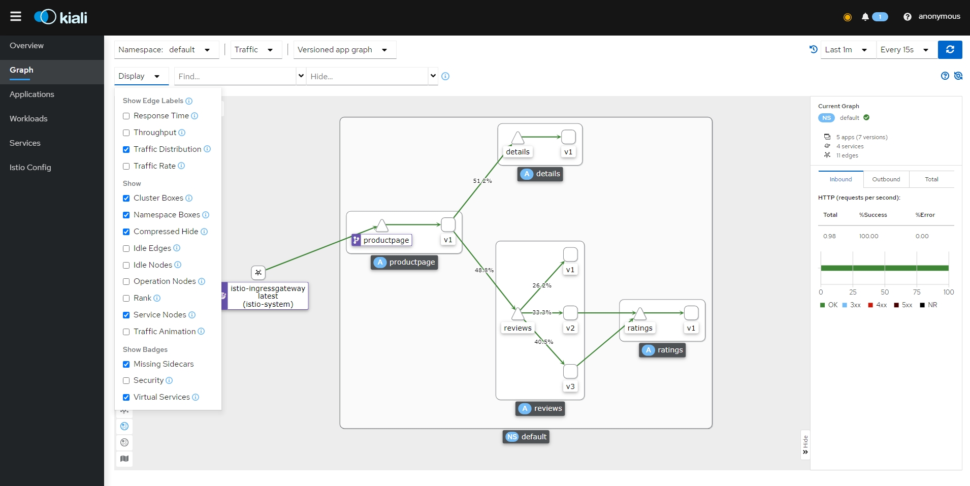- 클러스터 수신 및 송신을 포함하여 클러스터 내의 모든 트래픽에 대한 자동 메트릭, 로그 및 추적