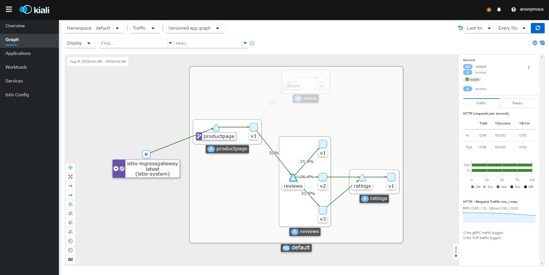 - 지정된 서비스의 모든 인스턴스를 버전별로 그룹화하고 가상 서비스의 라우팅 규칙에서 인스턴스에 대한 트래픽을 제어