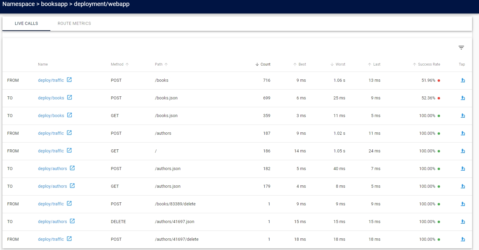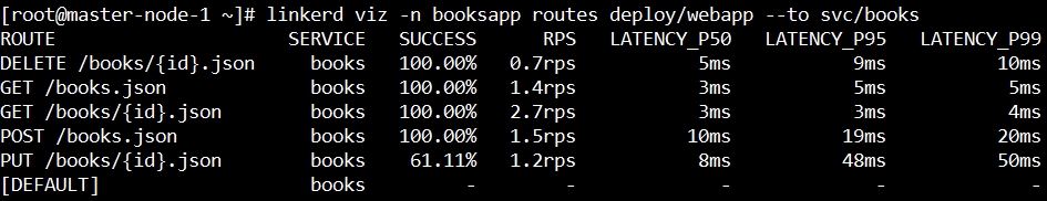 linkerd viz -n booksapp routes deploy/books --to svc/authors
