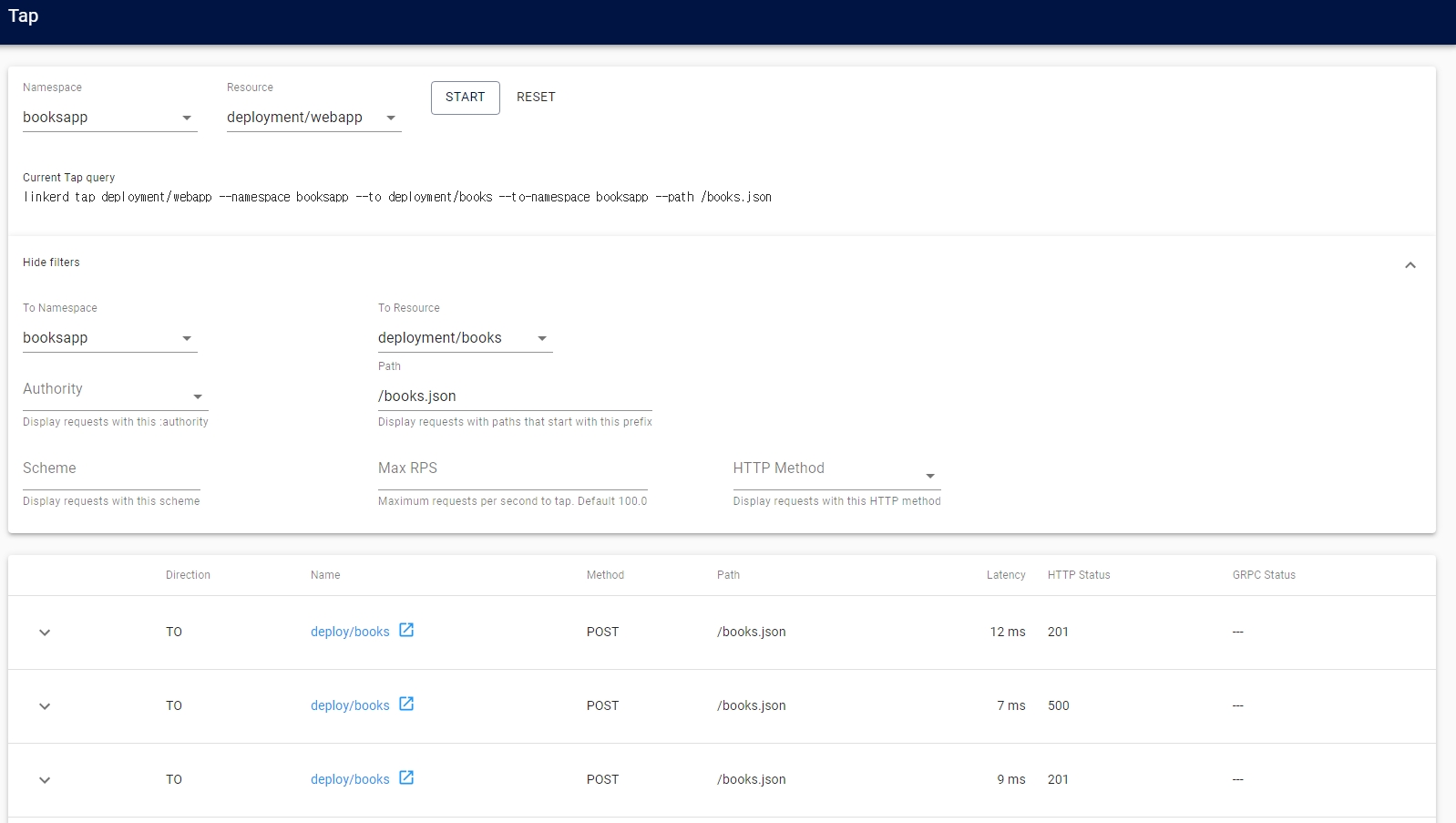 curl --proto '=https' --tlsv1.2 -sSfL https://run.linkerd.io/booksapp/books.swagger | linkerd -n booksapp profile --open-api - books | kubectl -n booksapp apply -f -