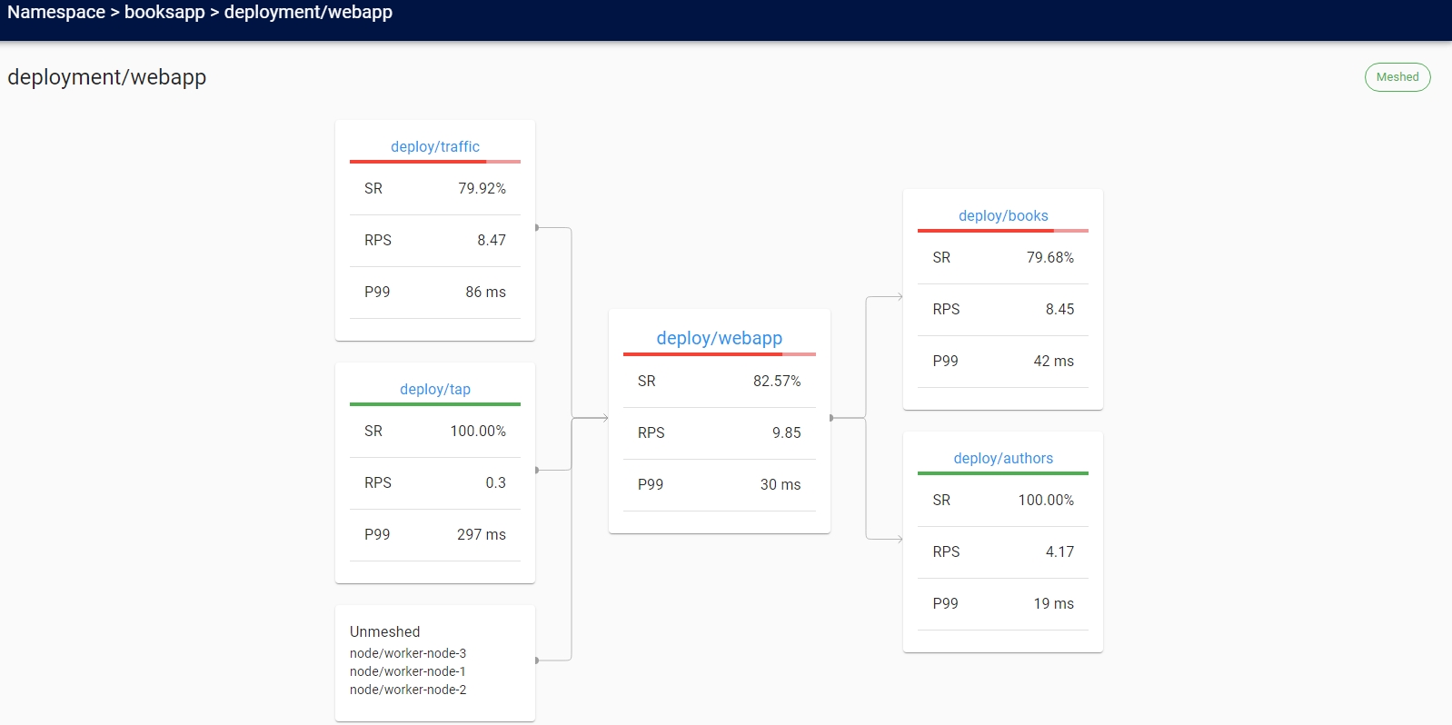 apiVersion: linkerd.io/v1alpha2 kind: ServiceProfile metadata: creationTimestamp: null name: webapp.booksapp.svc.cluster.local namespace: booksapp spec: routes: - condition: method: GET pathRegex: / name: GET / - condition: method: POST pathRegex: /authors name: POST /authors - condition: method: GET pathRegex: /authors/[^/]* name: GET /authors/{id} - condition: method: POST pathRegex: /authors/[^/]*/delete name: POST /authors/{id}/delete - condition: method: POST pathRegex: /authors/[^/]*/edit name: POST /authors/{id}/edit - condition: method: POST pathRegex: /books name: POST /books - condition: method: GET pathRegex: /books/[^/]* name: GET /books/{id} - condition: method: POST pathRegex: /books/[^/]*/delete name: POST /books/{id}/delete - condition: method: POST pathRegex: /books/[^/]*/edit name: POST /books/{id}/edit